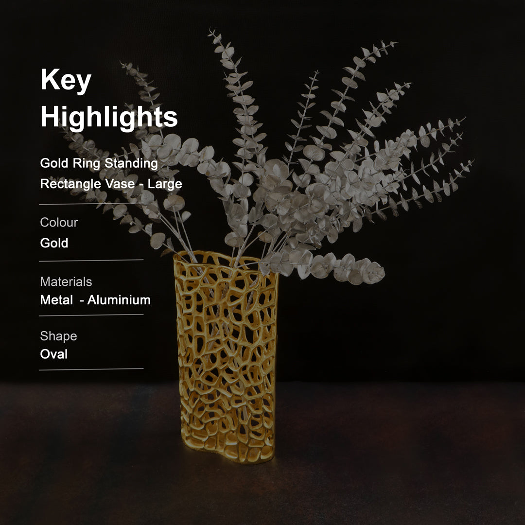 Aluminium Gold Ring Standing Rectangle Vase - Large